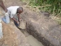 Dies war das herrschende Prinzip in jeder Phase des Baus. Denn nicht nur die betreuten Kinder, sondern möglichst viele Jugendliche aus der Umgebung wurden mit eingebunden und geschult, beginnend mit der Rodung. In deren Verlauf zeigten ihnen erfahrene Helfer, wie man sinnvollen Erosionsschutz betreibt. Bei der Herstellung des Baumaterials lernten junge Männer vor Ort auf der Baustelle, wie man Ziegel aus Sand und Zement herstellt, sie trocknet und später beim Bau verwendet (siehe Fotos).